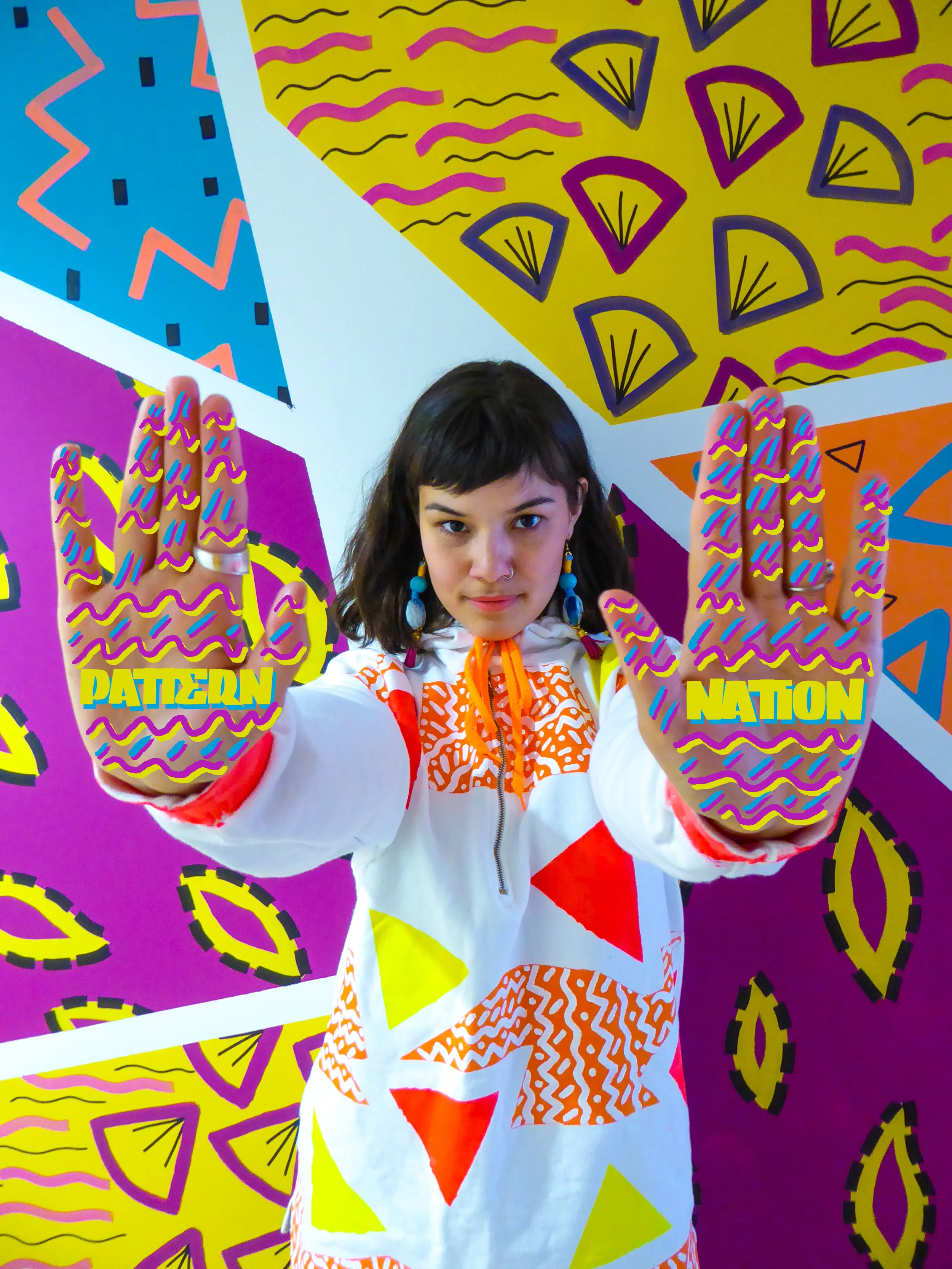 Pattern Nation is a collaborative and inclusive platform aimed at connecting artists who embrace bold colour and pattern globally. PatternNation was founded by Vancouver Canada based artist and fashion designer Cydney Eva. PatternNation collaborations engage with many indigenous and radical thinking artists globally. As an act of decolonization through art PatternNation shoots, events, video's and clothing aim to create conversation around identity politics. Part of the platforms mandate is to create more space for inter-generational women and people of colour in fashion and to facilitate cross cultural sharing through art. The aim of PatternNation is to work directly with artists from various backgrounds and create content that subverts the usual consumption of Caucasian minimalist work in the art and fashion worlds.