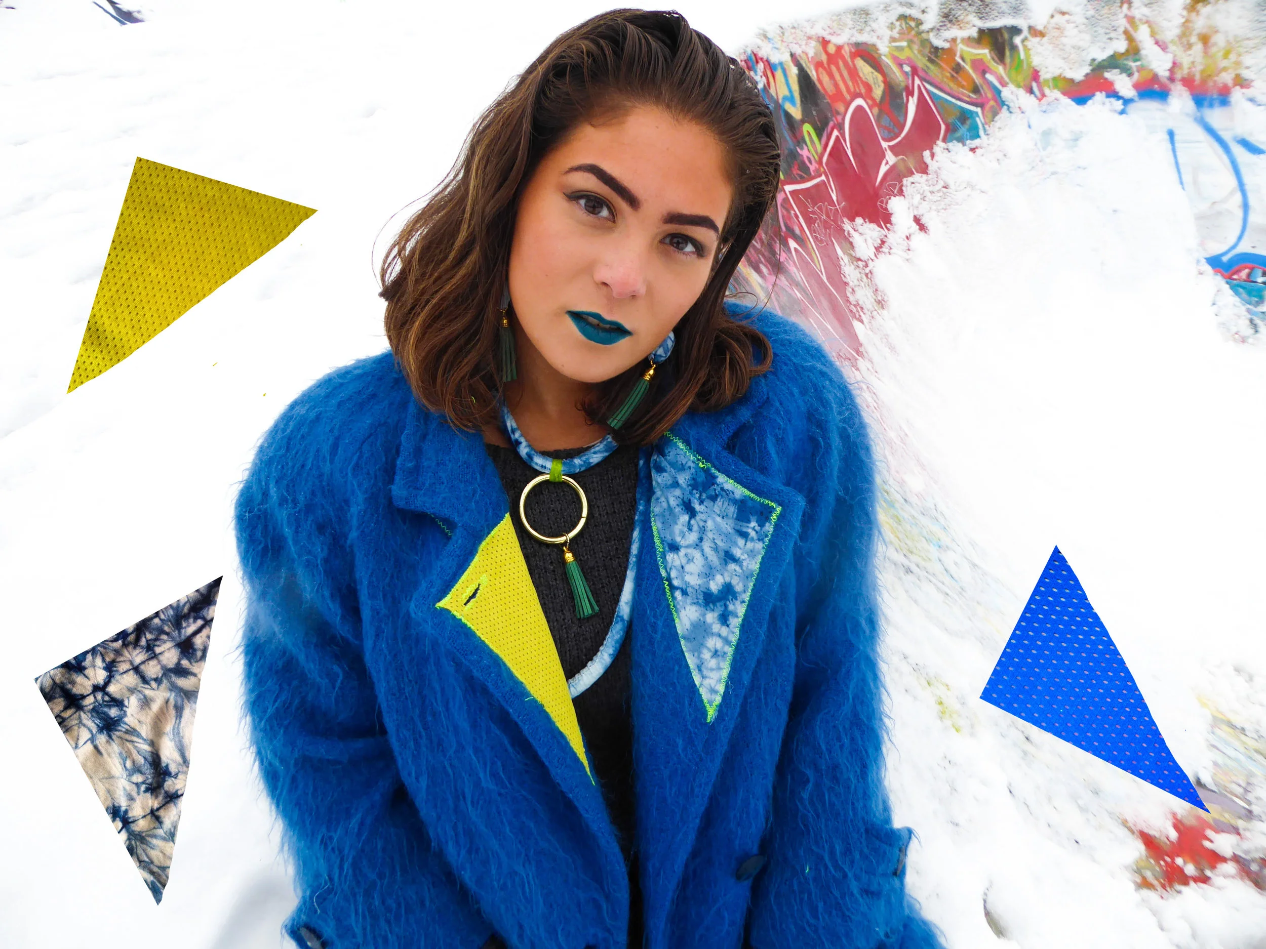 Went for a walk with Vancouver DJ INN EZZ in December of 2016 at Clark Park. INN EZZ is an emerging female DJ in the hip-hop, RnB, boogie, house and electronic music scene in Vancouver. She is sporting PatternNation reworked jacket winter collection and indigo fabric jewelry